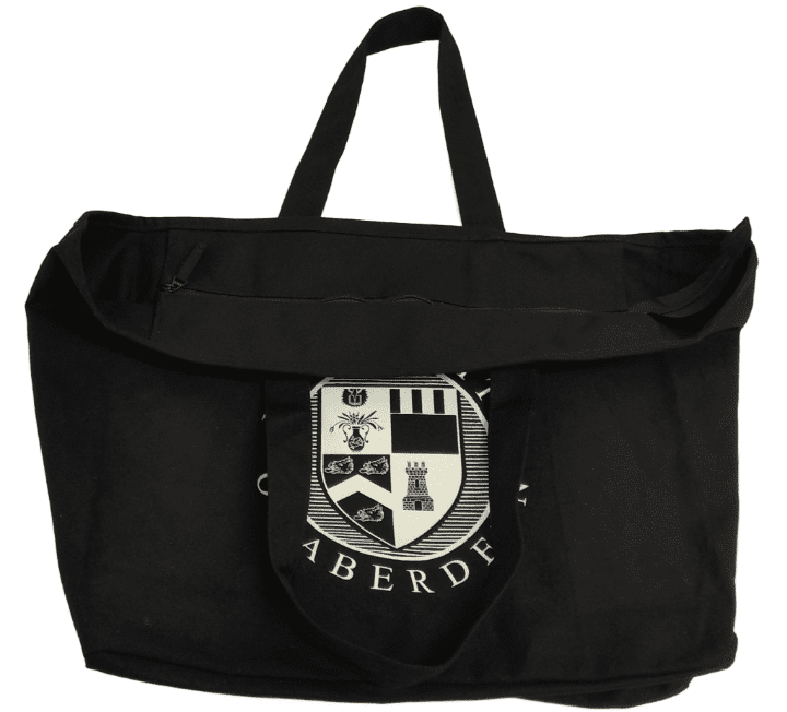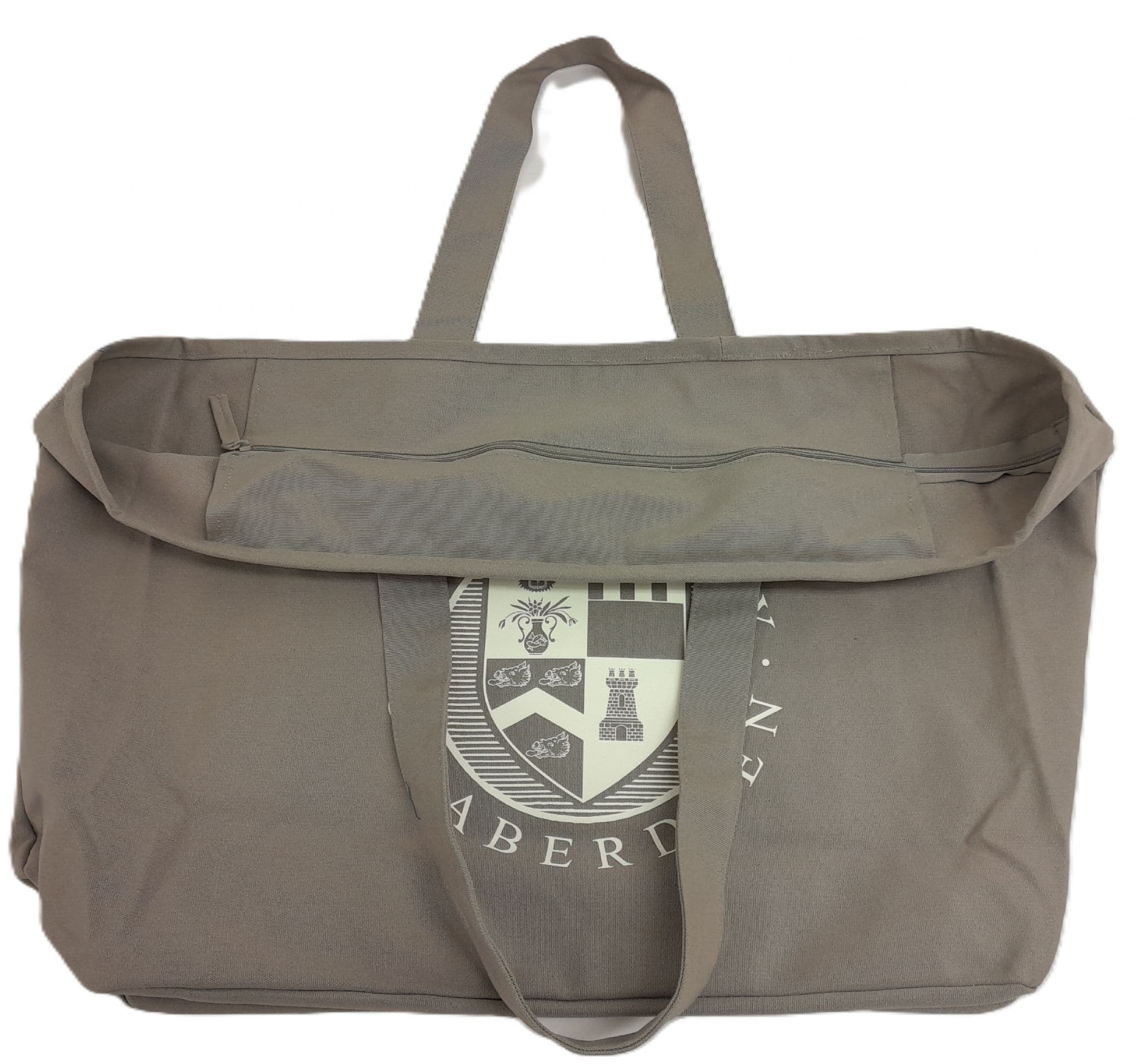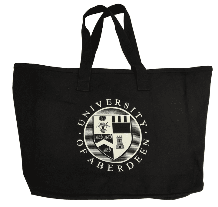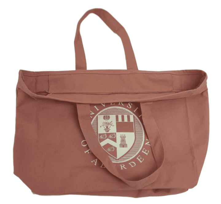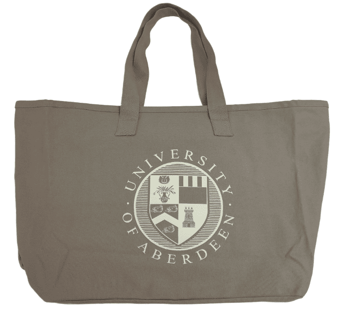 100% cotton oversize tote bag with University of Aberdeen design and inner zip.